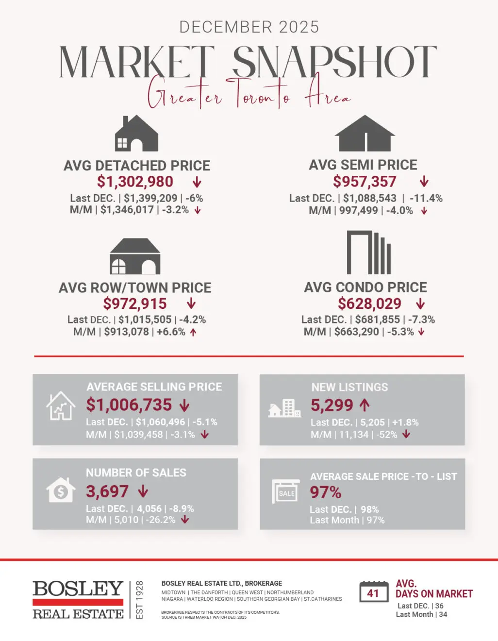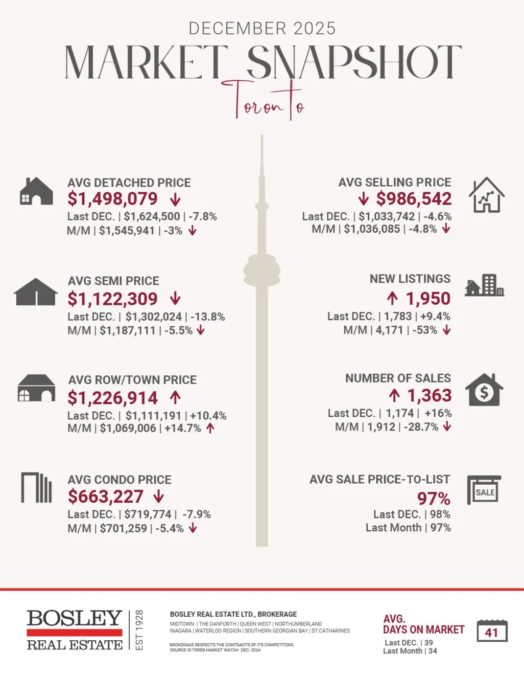Developers launched only 10 new condo projects in the GTHA last year, bringing 1,425 units to market. Just 22% of those units sold, down from 24% in 2024 and far below the 81% sales rate seen in 2021. This decline occurred despite average new-launch selling prices dropping to a five-year low of $1,123 per sq. ft, down 8% from 2024 and 18% from 2022.