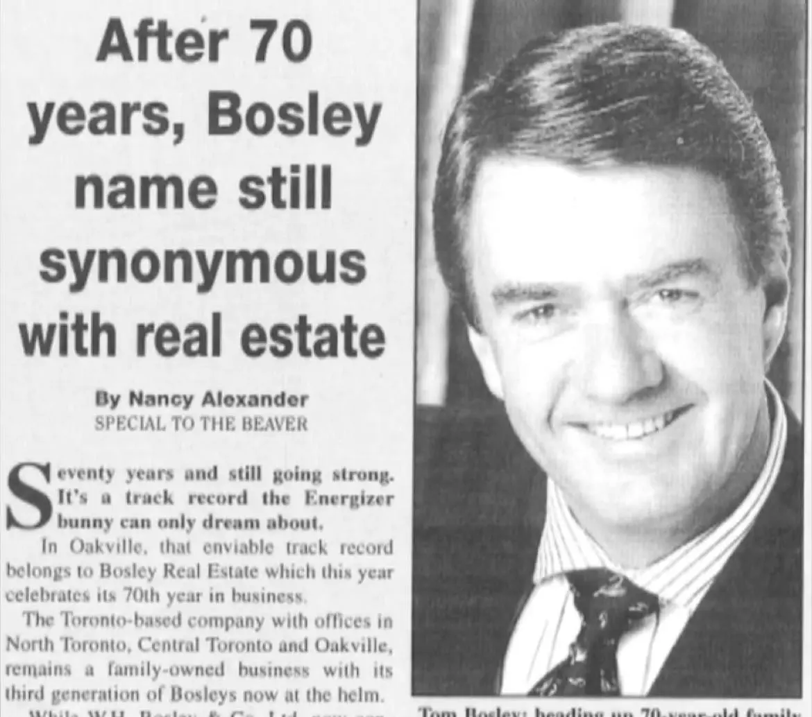 Family-led since 1928, the brokerage has always been focused on improving and innovating the industry. From 1928-1975, Bosley Real Estate quickly became known for assembling very large plots of land for future development on sites today known as Toronto City Hall, the downtown Toronto Bank of Nova Scotia building, Stelco, Erie Steel, and the Ford Plant in Oakville.
